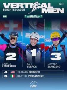 The second day of the Youth World Cup in Berchtesgaden featured the Vertical race, testing the athletes’ climbing strength and endurance on challenging slopes. The top performances in each category are as follows: